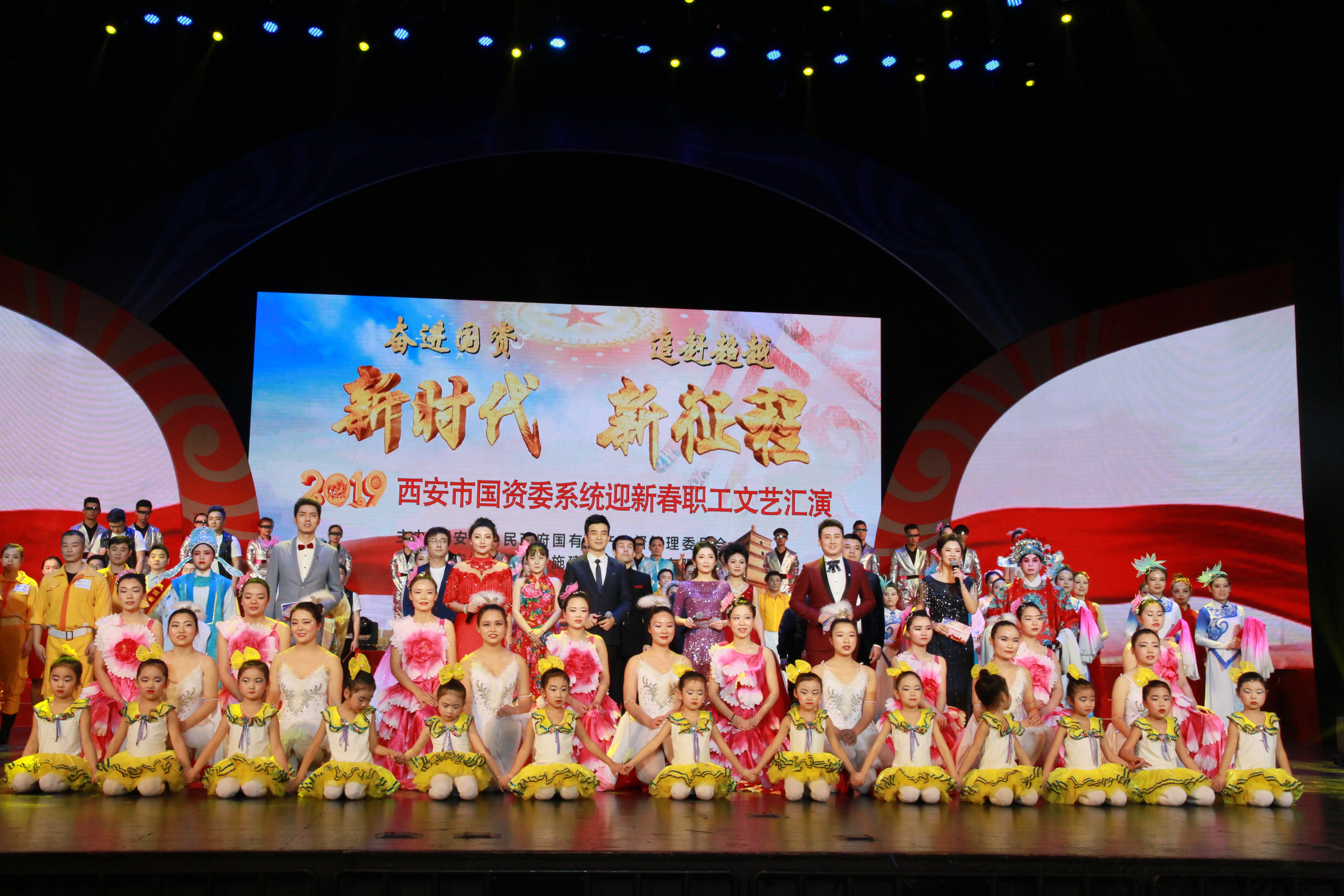 瑞犬辞旧岁,金猪迎新春。2019年1月28日下午,西安市国资委系统以“奋进国资新时代 追赶超越新征程”为主题的2019年迎新春职工文艺汇演在曲江国际会议中心三楼大礼堂隆重举行。来自西安市国资委系统内35户企业的650名演员为大家奉上了一场精彩绝伦的文艺盛宴。市国资委系统的近2000名干部职工观看了演出。文艺汇演并举行了颁奖活动。