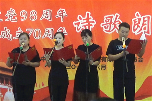 7月1日晚,物化探队举办了庆祝建党98周年、新中国成立70周年诗歌朗诵会。物化探队领导班子全体成员和党员干部职工及家属100余人观看了演出。