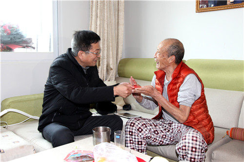 安增会来到刘爱民家中,与老人亲切交谈,仔细询问老人的身体状况,祝愿他早日康复,并为老人送去了慰问金和慰问品,送去了组织的关怀和温暖,送去了新年的祝福,祝福老人过一个欢乐祥和的春节。