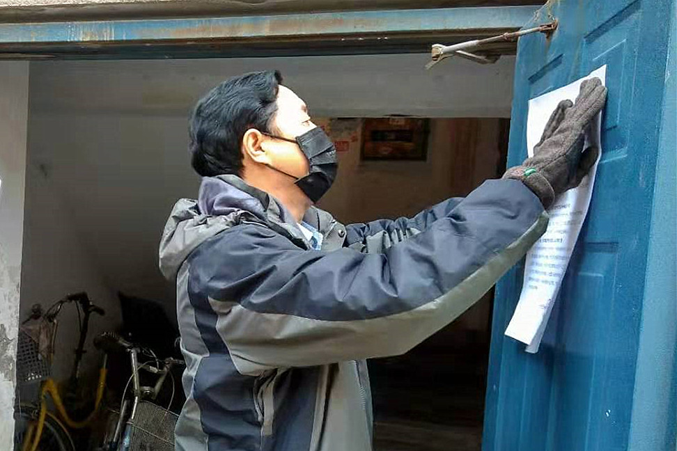 逐户排查登记,把《关于做好新型冠状病毒感染的肺炎疫情防控工作的紧急通知》送到居住在院内的150多户家中;逐户摸排登记发热、湖北返回、密切接触感染者等3类人员。对当前疫情防控进行宣传,坚信党的领导,不听谣、不信谣、不传谣,引导职工众志成城,抗击疫情。