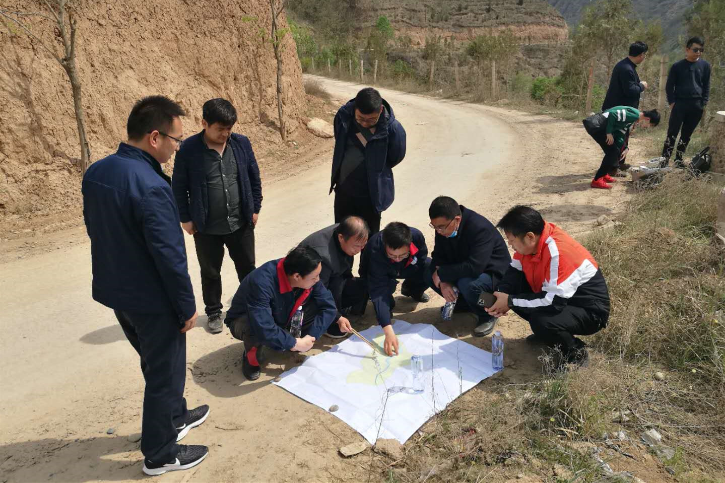4月22日,陕西地矿物化探队有限公司党委书记、执行董事、总经理王新坪与陕西地矿区研院有限公司党委书记、执行董事邢宪龙一行前往磨子河流域踏勘,为该河流域生态治理进行前期调研。