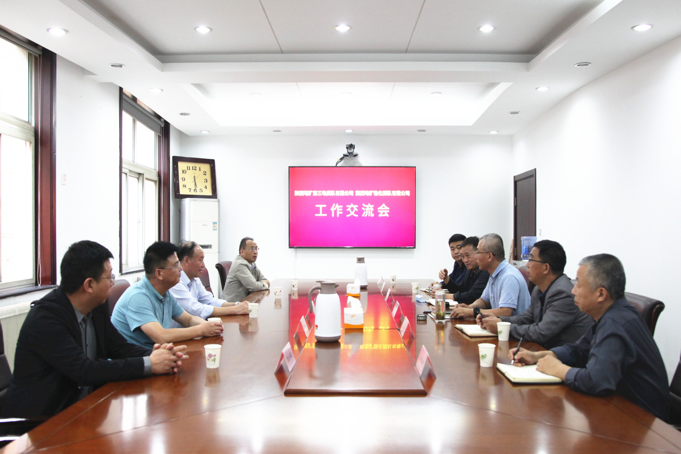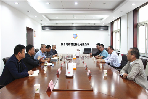 9月25日下午,陕西地矿第三地质队有限公司党委书记、执行董事、总经理李焕林,副总经理贺永平、李亚成,纪委书记李军政,总会计师、办公室主任史小军一行,来物化探队有限公司调研交流工作。公司领导班子成员及相关部门负责人与李焕林一行进行了亲切座谈。