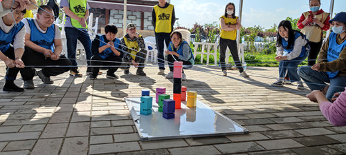团建活动在歌声嘹亮的《团结就是力量》、《没有共产党就没有新中国》的红歌中拉开序幕,团建活动项目以集体协作和分队比拼的形式开展,分别进行了定点打卡、对弈四字棋、画图猜成语、合力建塔等精彩纷呈的团队拓展活动。每一个项目都需要队员们集思广益、分工协作、互相依靠、相互信任,齐心协力共同战胜困难,通过任务的逐项完成使大家感受到了合作与沟通的重要性,体验着奉献、协作、自信带来的成功喜悦。