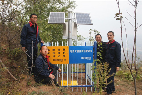 物化探队首个地质灾害智能监测预警示范工程在西安灞桥区席王乡王家坡村建成, 近日正式投入使用,并进入常态化监测。
